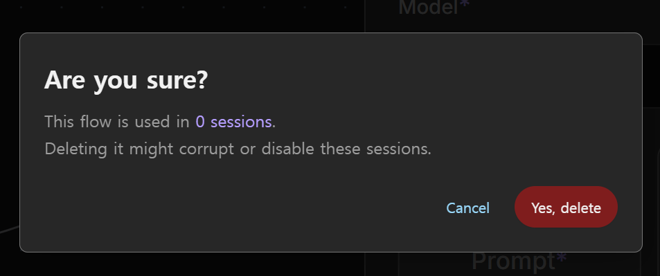 However, you will be given a warning sign that shows how many session are using the flow that you intend to delete.